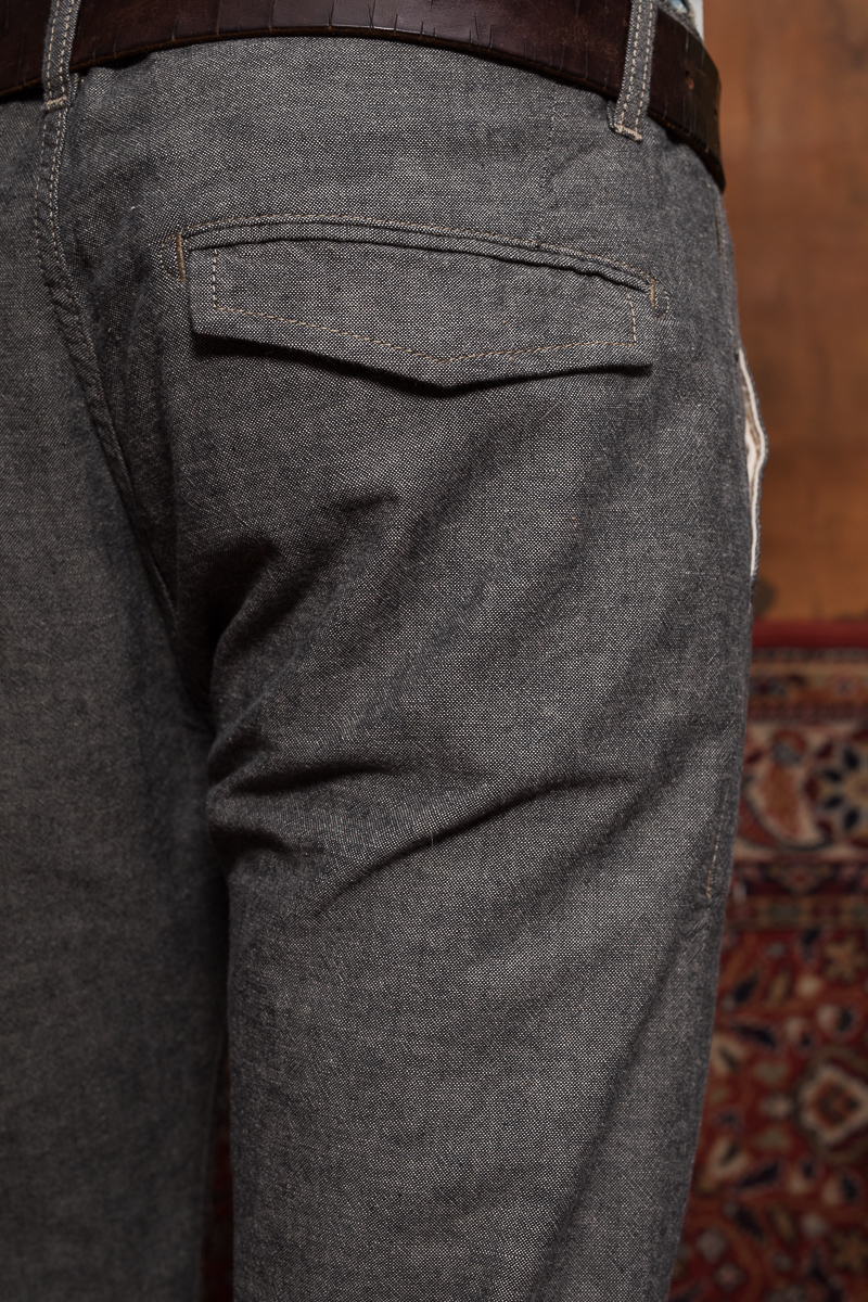 Chino con vita media e gamba leggermente affusolata, che offre una silhouette regolare ma moderna. Presenta una patta con bottoni in Corozo con chiusura a bottone, due tasche frontali inclinate e due tasche posteriori a filetto con bottoni. Internamente foderato in vita e nelle tasche con cotone.Delicatamente lavato per una mano più morbida e un comfort migliorato.