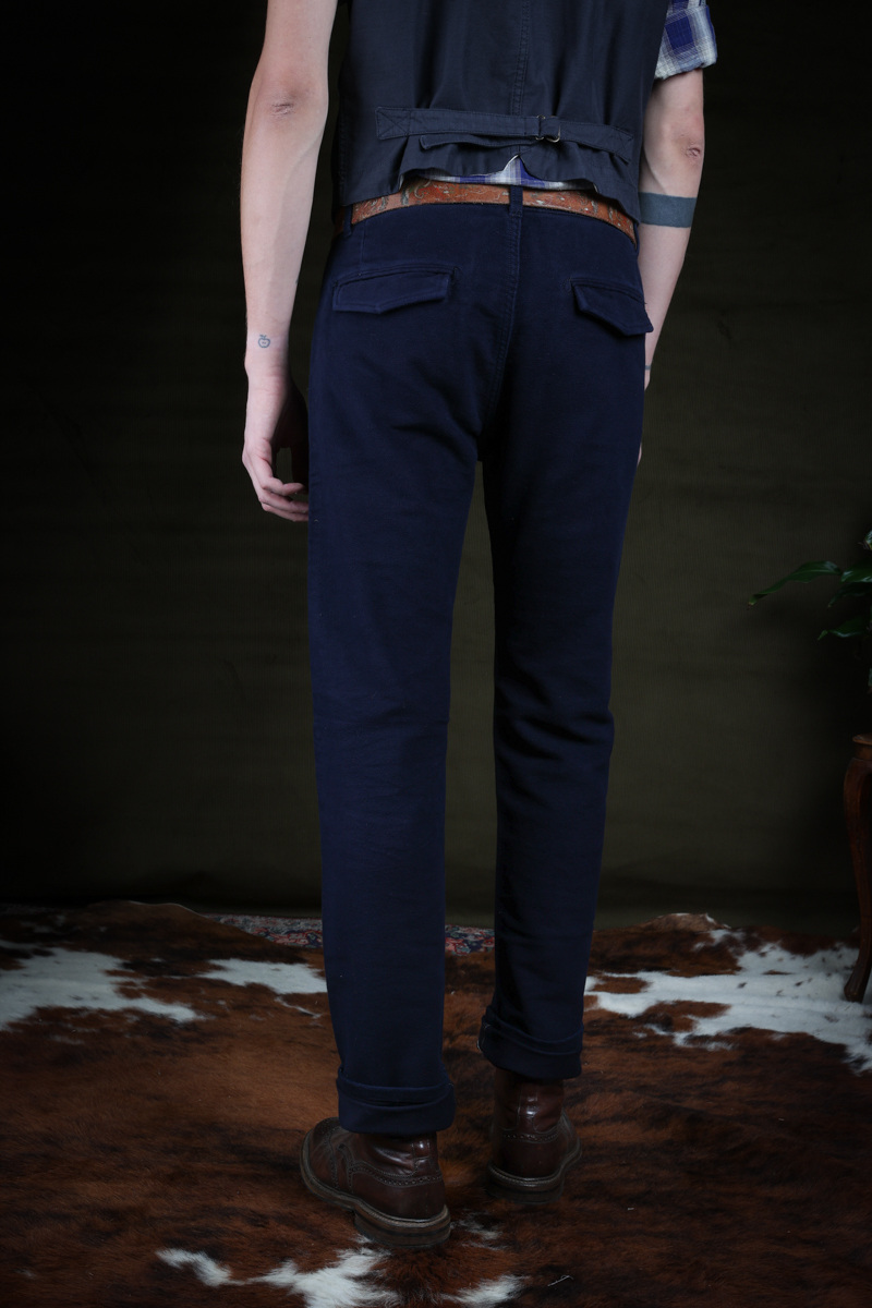Chino slim fit con patta con bottoni, due tasche ad angolo sul davanti e due tasche a filetto con bottone sul retro. Rifinito con bottoni in corozo e fodere in chambray. Prodotto in Italia